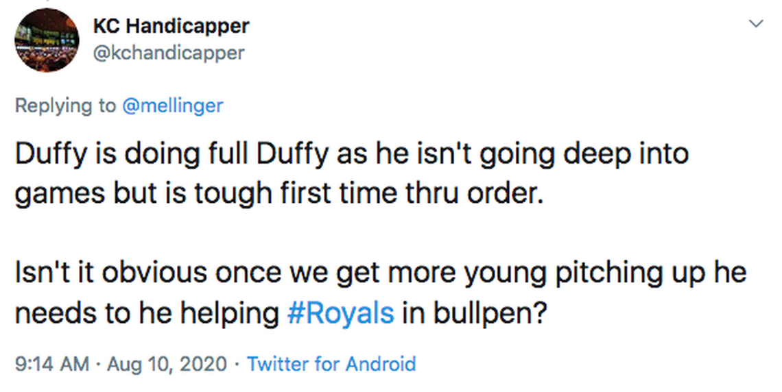 Look, Duffy is a personal favorite. That’s true for me, and more to the point here it’s true of most who’ve talked with him. But the Royals are becoming more transactional — we talked about this on the podcast last week — which means loyalty is less of a factor.