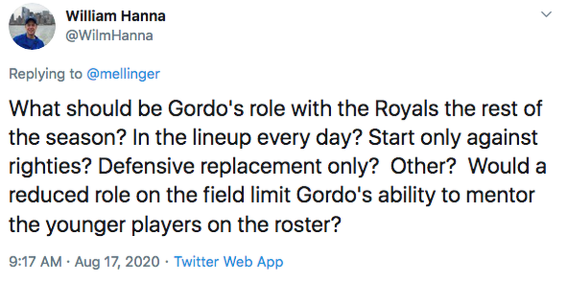 The Royals might want to get Bubba Starling more time. Nick Heath should play more when he’s healthy. Gordon will continue to lose time. That’s the way it should be.