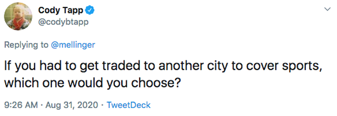 My favorite cities are Chicago, New York and San Diego. I’ve never thought I’d be happy living in New York long-term, and it seems to me that Chicagoans don’t want their sports from people who aren’t Chicagoans.