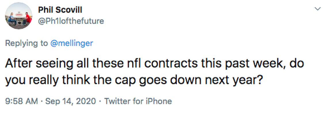 Because, you’re right, we’re seeing some really big contracts here, and not just for quarterbacks — DeAndre Hopkins, Dalvin Cook, Derrick Henry, Alvin Kamara, Cooper Krupp, Travis Kelce, George Kittle, Yannick Ngakoue, Joey Bosa, Jalen Ramsey, Chris Jones, Cameron Heyward, and those are just the guys I can think of off the top of my head.