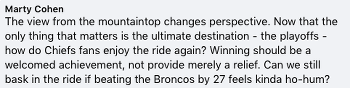 This is what Reid and the coaches mean when they talk about their biggest challenge being consistent focus. It’s natural to look ahead, or let off the gas. But NFL seasons are about stacking improvement on improvement, and what the Chiefs do or don’t do now will show up in the postseason.