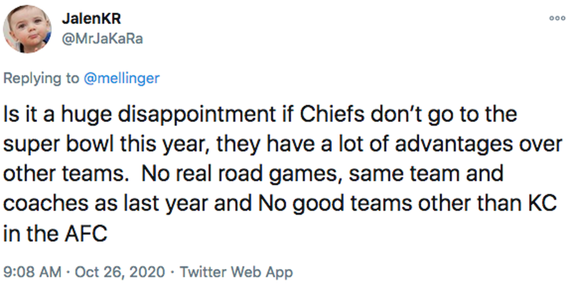 There’s a lot to unpack here. Yes, it would be a disappointment if the Chiefs don’t make the Super Bowl. Yes, they have a lot of advantages. No, those advantages don’t include no real road games. And no, the Chiefs are not the only good team in the AFC.