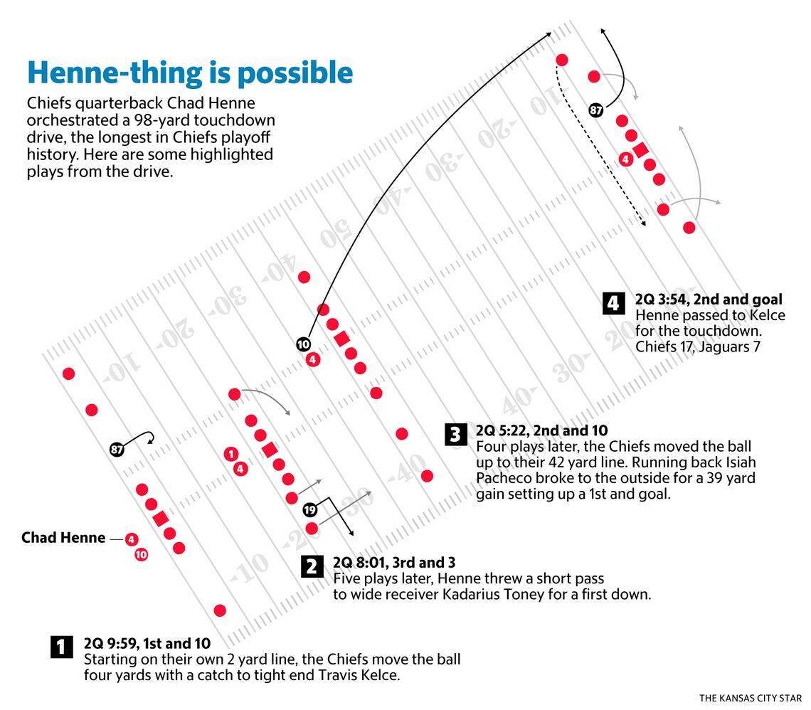We mean because of the pivotal and rather incredible work of backup quarterback Chad Henne — whose play was momentous in real time and also in what it suggests, once more, about his ability to keep the Chiefs afloat when called upon.